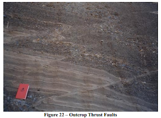 When the glacier moved back over the sediments, faulting occured. The faults below can