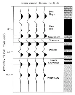 This synthetic seismogram was computed using a sonic log recorded in a Dakota Aquifer