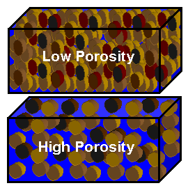Well sorted (grains of approximately all one size) materials have higher porosity than
