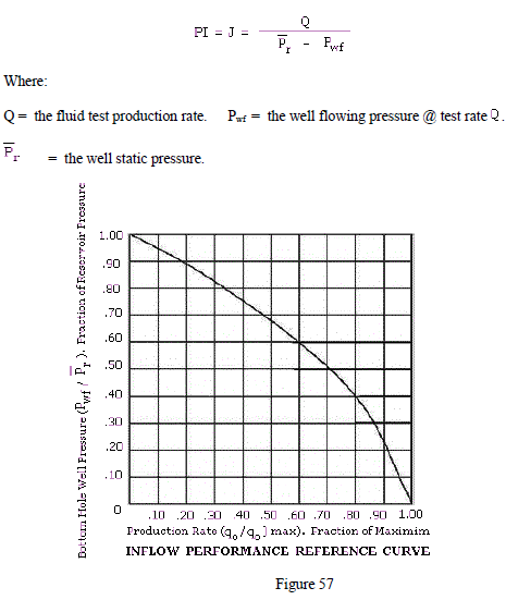 This relationship was first used by W.E. Gilbert1 and further developed by J.V. Vogel2. Vogel developed a dimensionless reference curve that can be used to determine the IPR curve for a particular well.