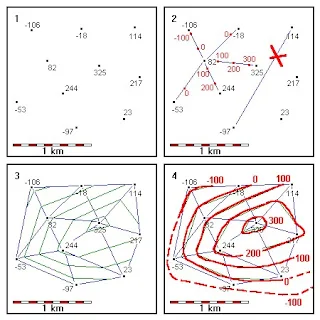· If you treat the data as a series of three-point problems, contours within each
