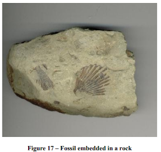 Each of the geological periods is characterised by groups, or suites, of fossils. The picture below shows a typical fossil embedded in a rock. The geological periods are grouped into three major divisions of Phanerozoic time. The