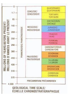 Carboniferous, Permian, Triassic, Jurassic, Cretaceous, Tertiary and Quaternary.