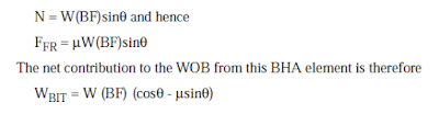 If the BHA is not rotated, the force of friction, FFR acting up the borehole