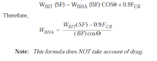 Denoting the total air weight of the BHA by WBHA the weight on bit by